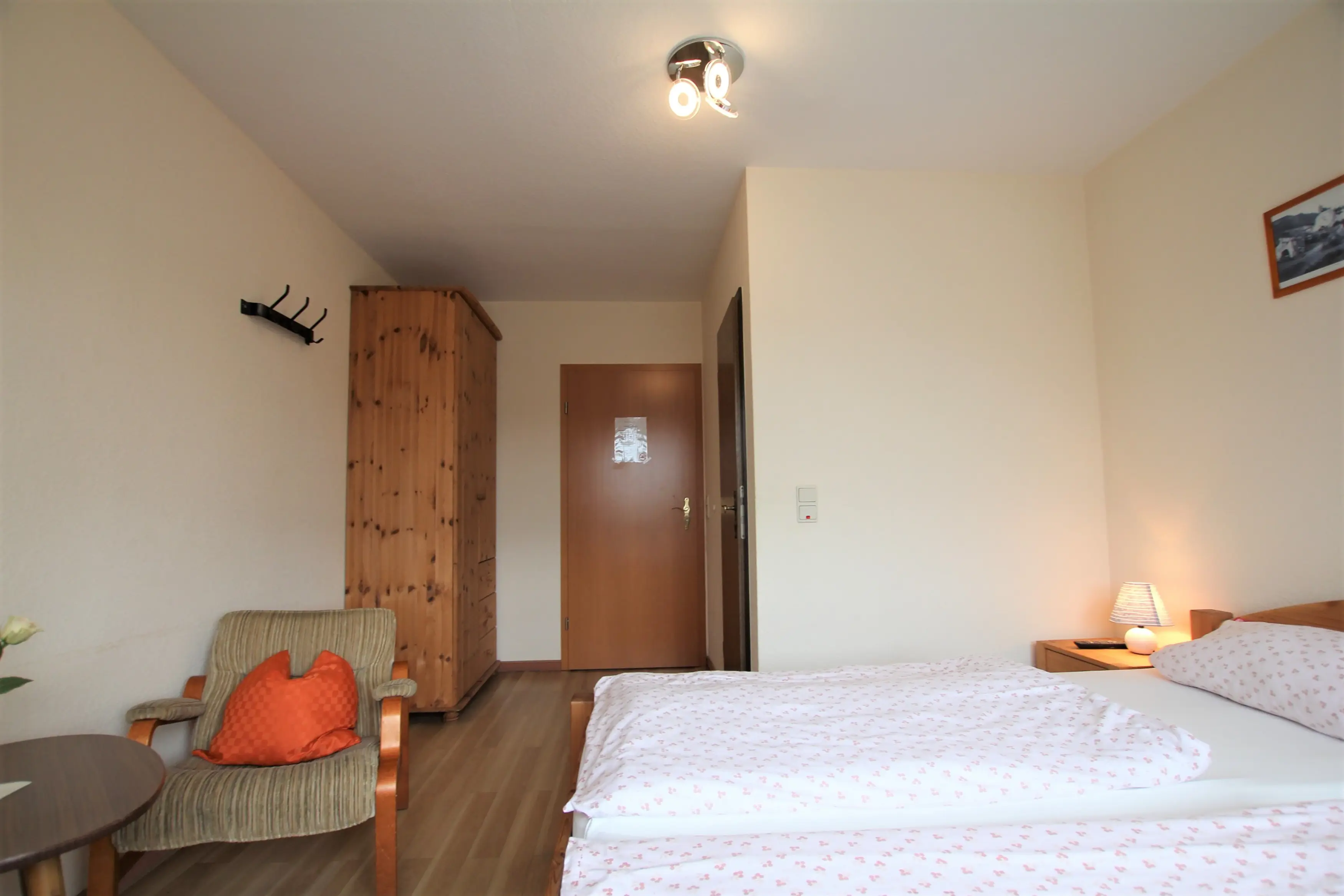 Wir bieten Ihnen zehn liebevoll eingerichtete Zimmer, die zum Wohlfühlen einladen. Wählen Sie zwischen acht Doppelzimmern und zwei Einzelzimmern – perfekt für Paare, Alleinreisende oder Monteure. In unseren Doppelzimmern können Sie sich entscheiden, ob Sie lieber zwei Einzelbetten oder ein großes Doppelbett bevorzugen.